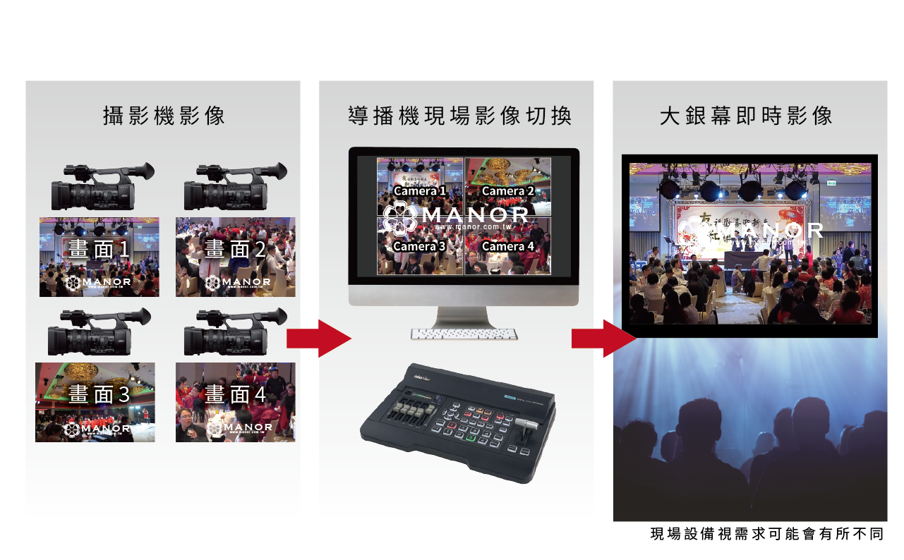 若是將導播功能運用在影像工程,可以同時使用多台攝影機,以不間斷的方式切換轉播畫面,做出與眾不同的視聽效果。
